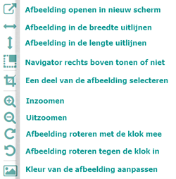 Klik (indien aanwezig) op het miniatuurtje van de afbeelding of op het detail icoon. Als er een digitaal bestand aan de beschrijving is gekoppeld, verschijnt dezelfde afbeelding veel groter op het scherm en kom je in de detailweergave terecht.